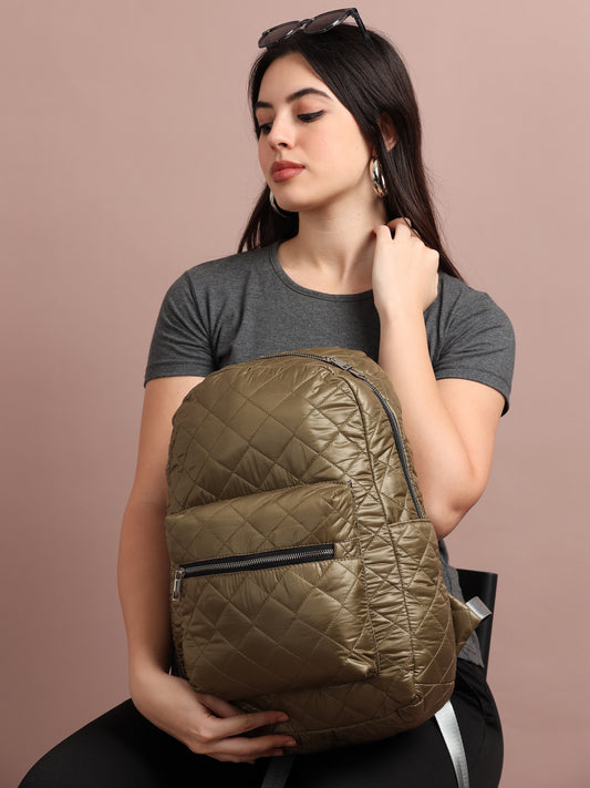 -50% OFFDark Khaki Diamond Quilted Backpack